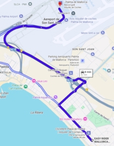 Grazie alla posizione strategica a soli 3,5 km dall’aeroporto di Palma, puoi raggiungere facilmente il nostro punto noleggio con il BUS A2 oppure in taxi (circa 15€).